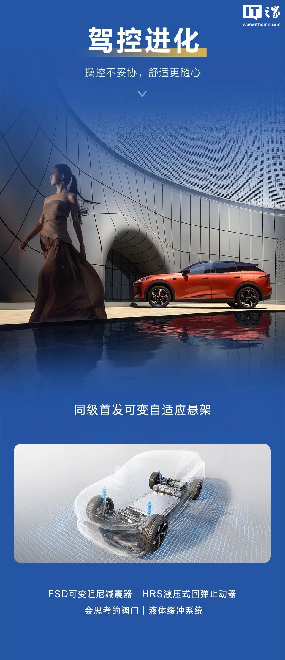 新车纯电版本动力、续航、补能升级,支持 7.4s 百公里加速、550km 纯电续航(标配热泵空调系统,低温续航里程提升 30km 以上)、标配 3C 超充;配备新一代原力超级电驱,总工况效率 92.3%、峰值功率 200kW、3814N・m 峰值轮端扭矩。